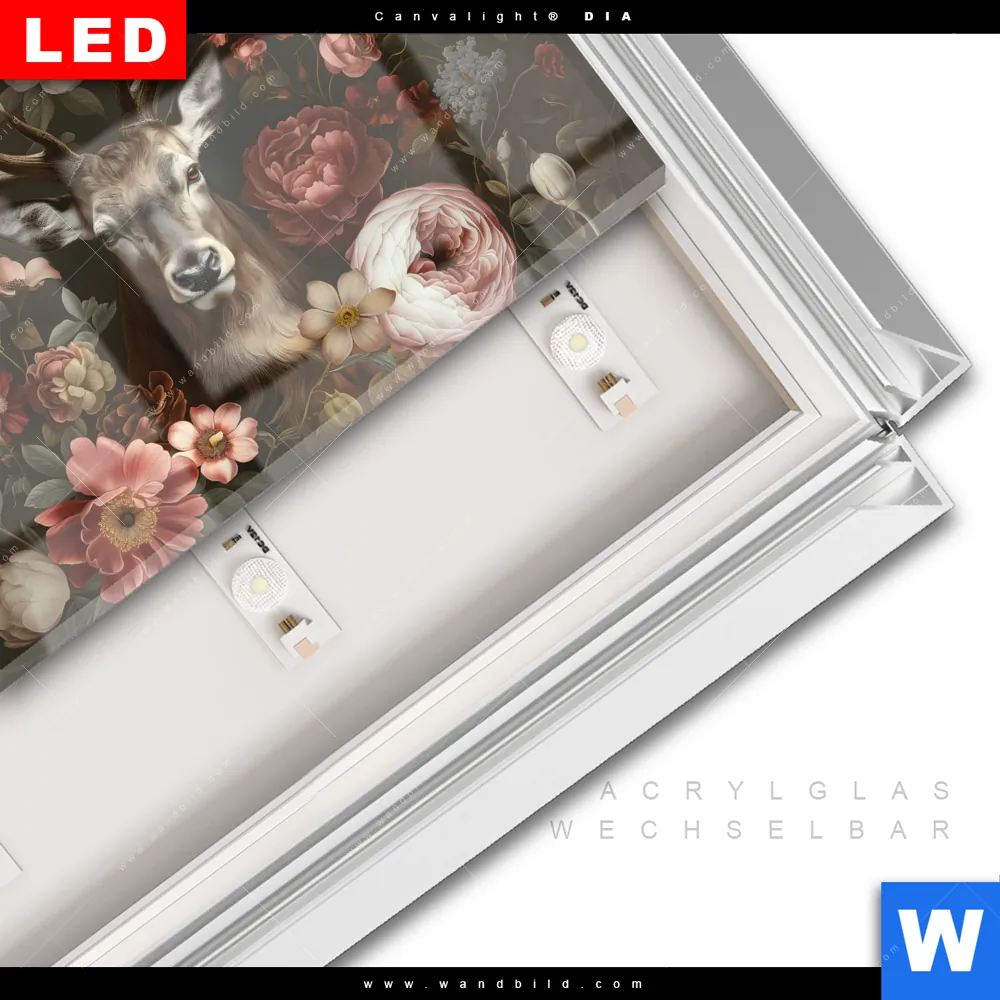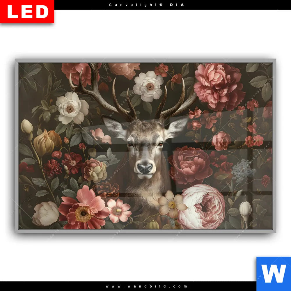 Canvalight® DIA Leuchtbild | Friedlicher Hirsch und Blüten | Querformat