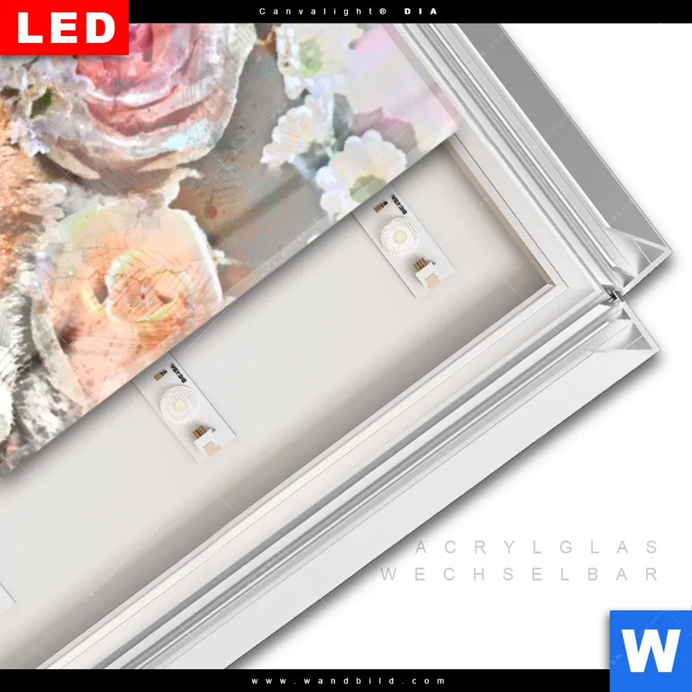 LED-Glasbild mit austauschbarem Acrylglas-Druck (Wechselbild)