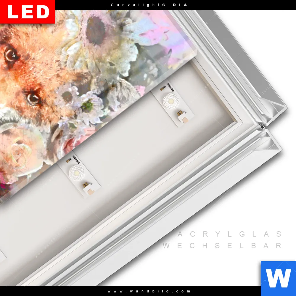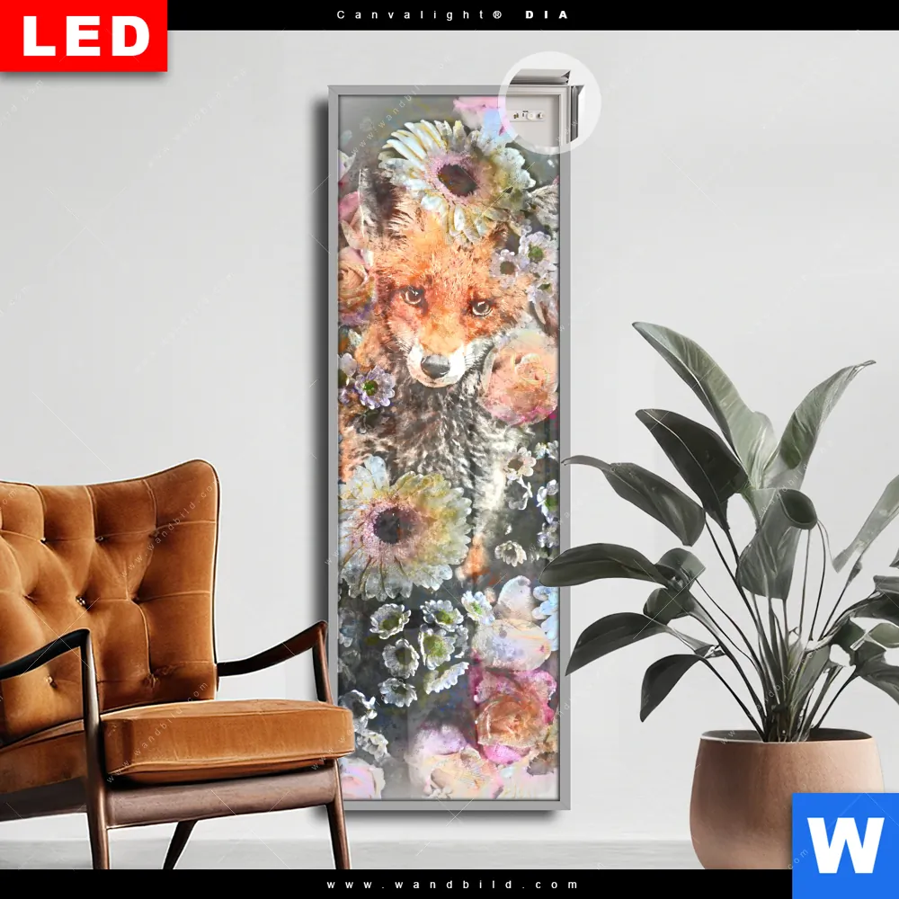 Canvalight® DIA Leuchtbild | Fuchs & Blumen | Schmal