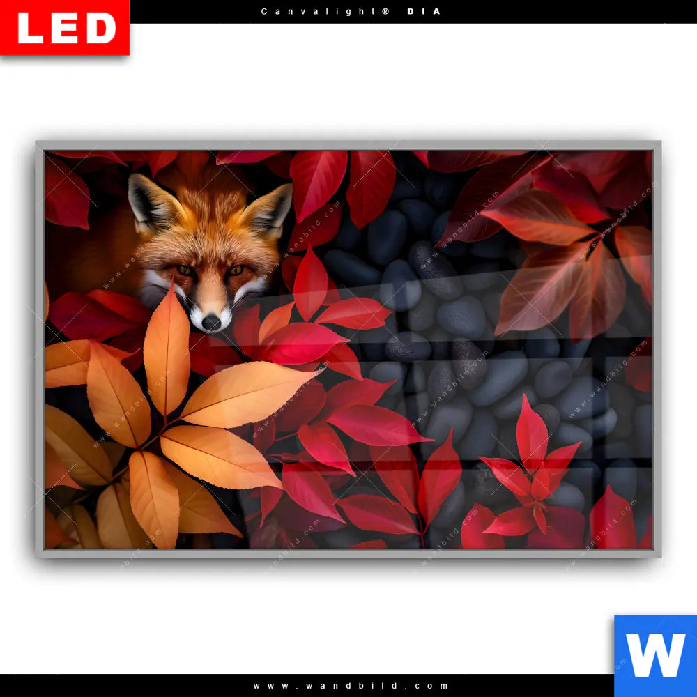 Canvalight® DIA Leuchtbild | Fuchs im Herbstlaub | Querformat