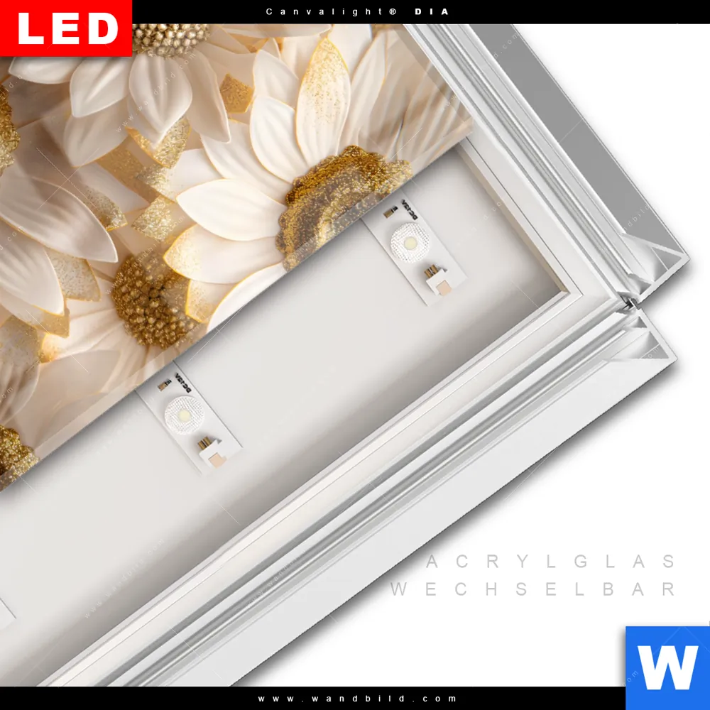 Canvalight® DIA Leuchtbild | Goldene Blütenpracht | Hochformat