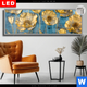 Canvalight® DIA Leuchtbild | Goldene Blumen auf Blau | Querformat