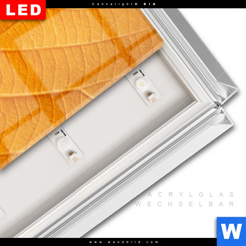 LED-Glasbild mit austauschbarem Acrylglas-Druck (Wechselbild)