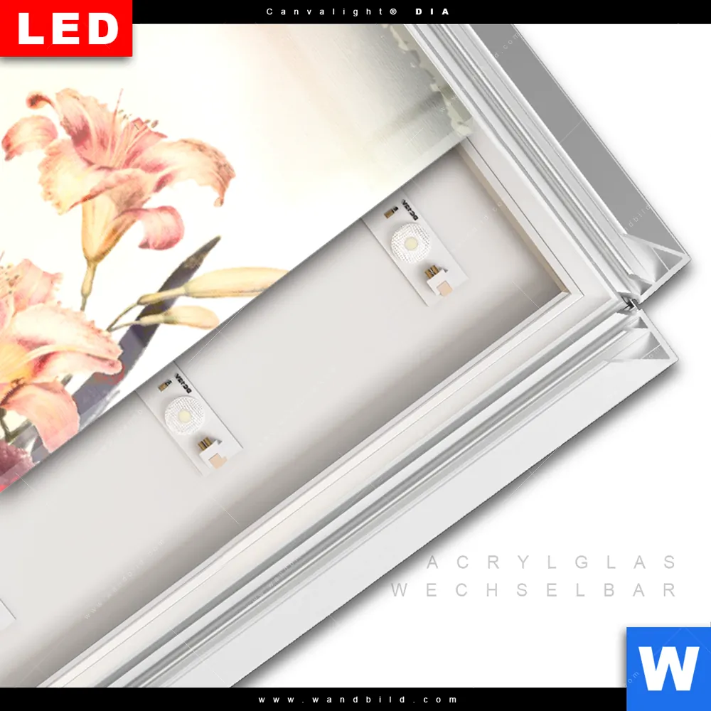 LED-Glasbild mit austauschbarem Acrylglas-Druck (Wechselbild)