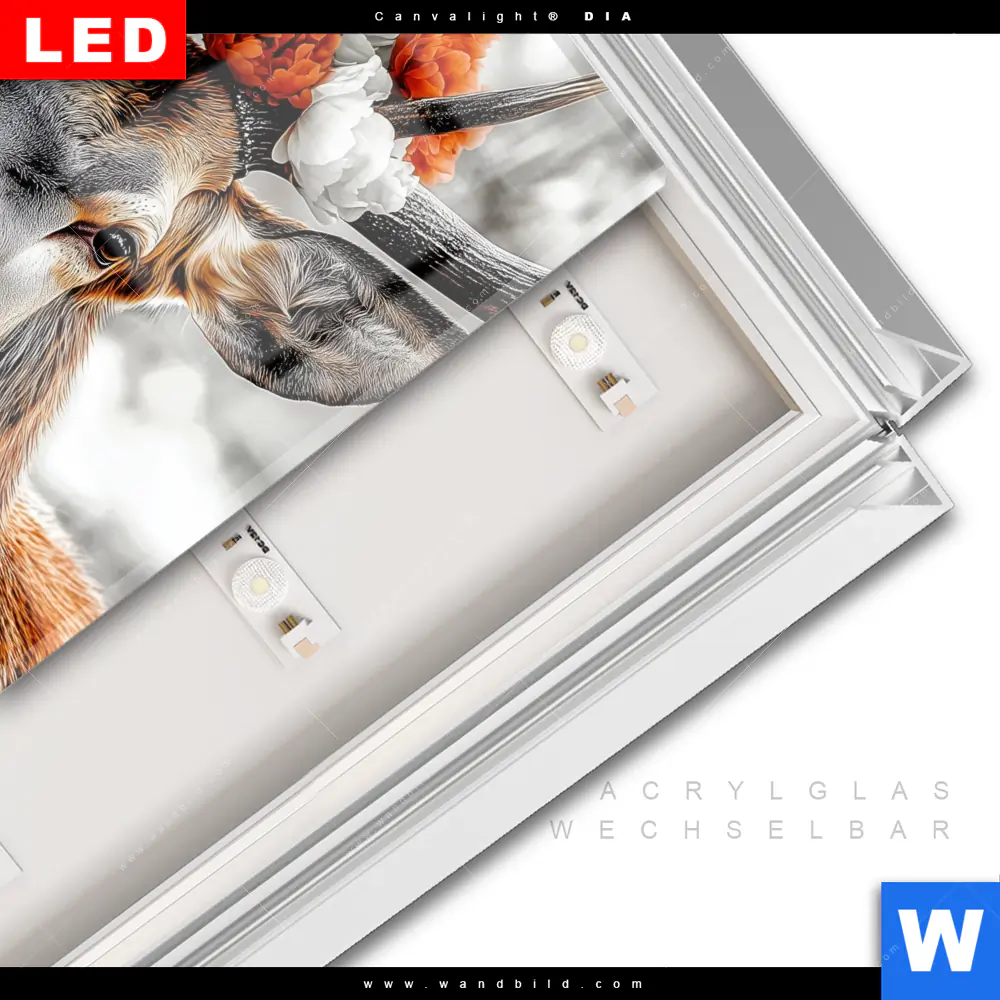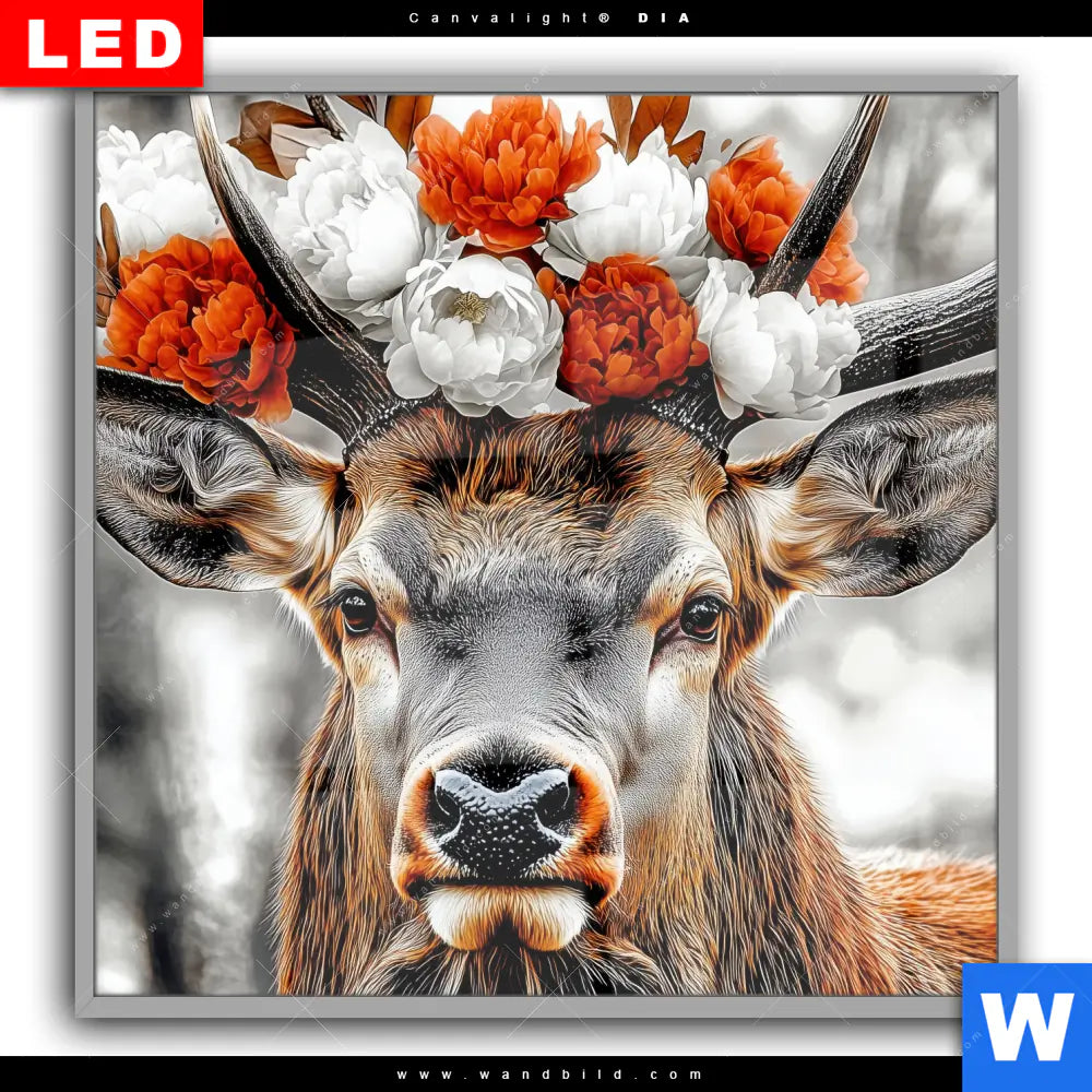Canvalight® DIA Leuchtbild | Hirsch mit Blumenkrone | Quadrat
