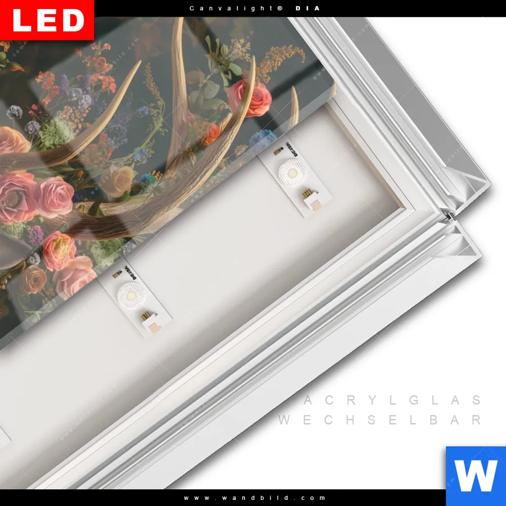 LED-Glasbild mit austauschbarem Acrylglas-Druck (Wechselbild)