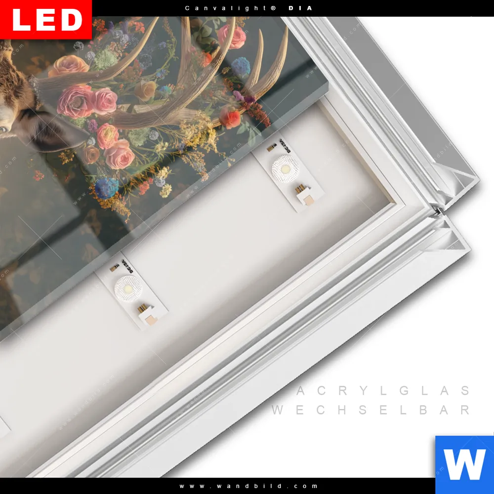 LED-Glasbild mit austauschbarem Acrylglas-Druck (Wechselbild)