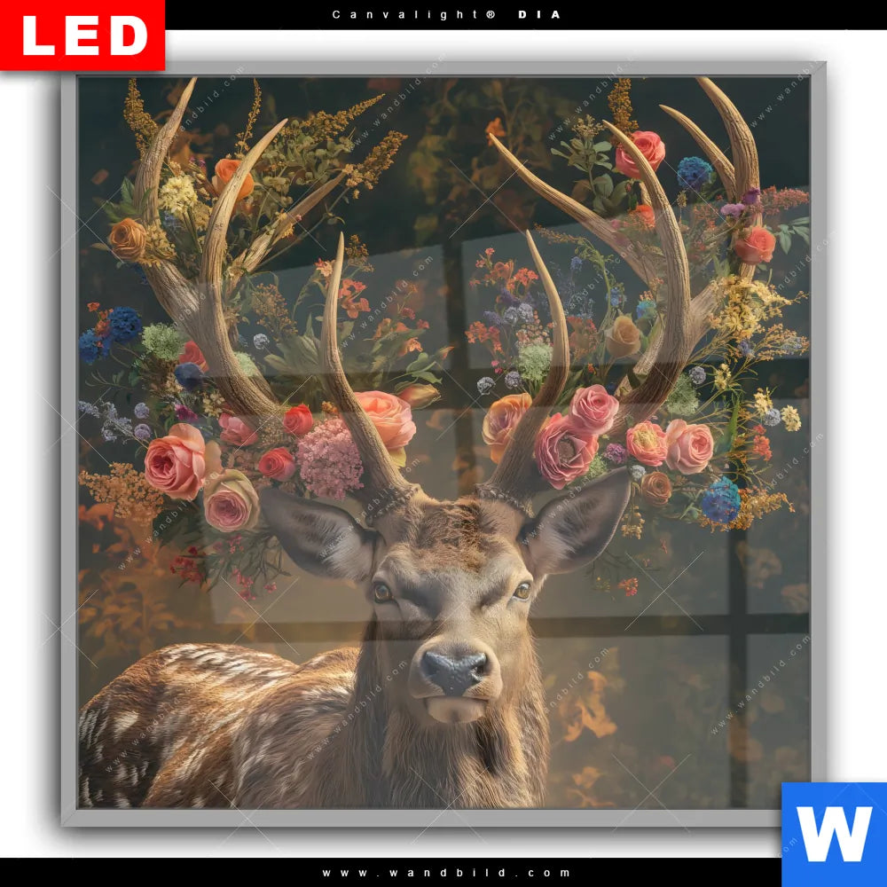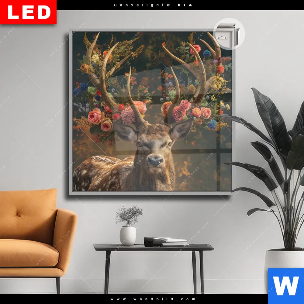 Canvalight® DIA Leuchtbild | Hirsch mit floralem Geweih | Quadrat