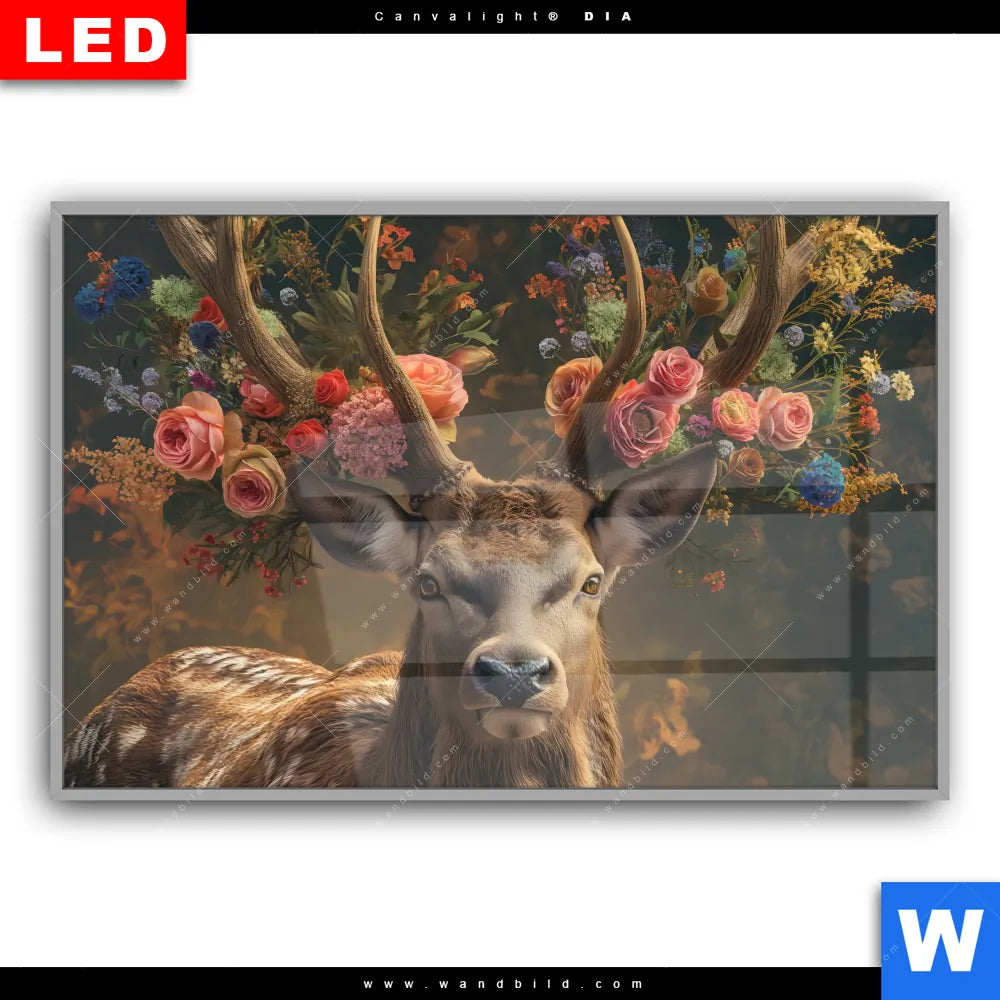 Canvalight® DIA Leuchtbild | Hirsch mit floralem Geweih | Querformat