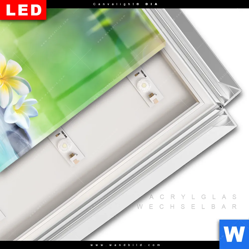 LED-Glasbild mit austauschbarem Acrylglas-Druck (Wechselbild)