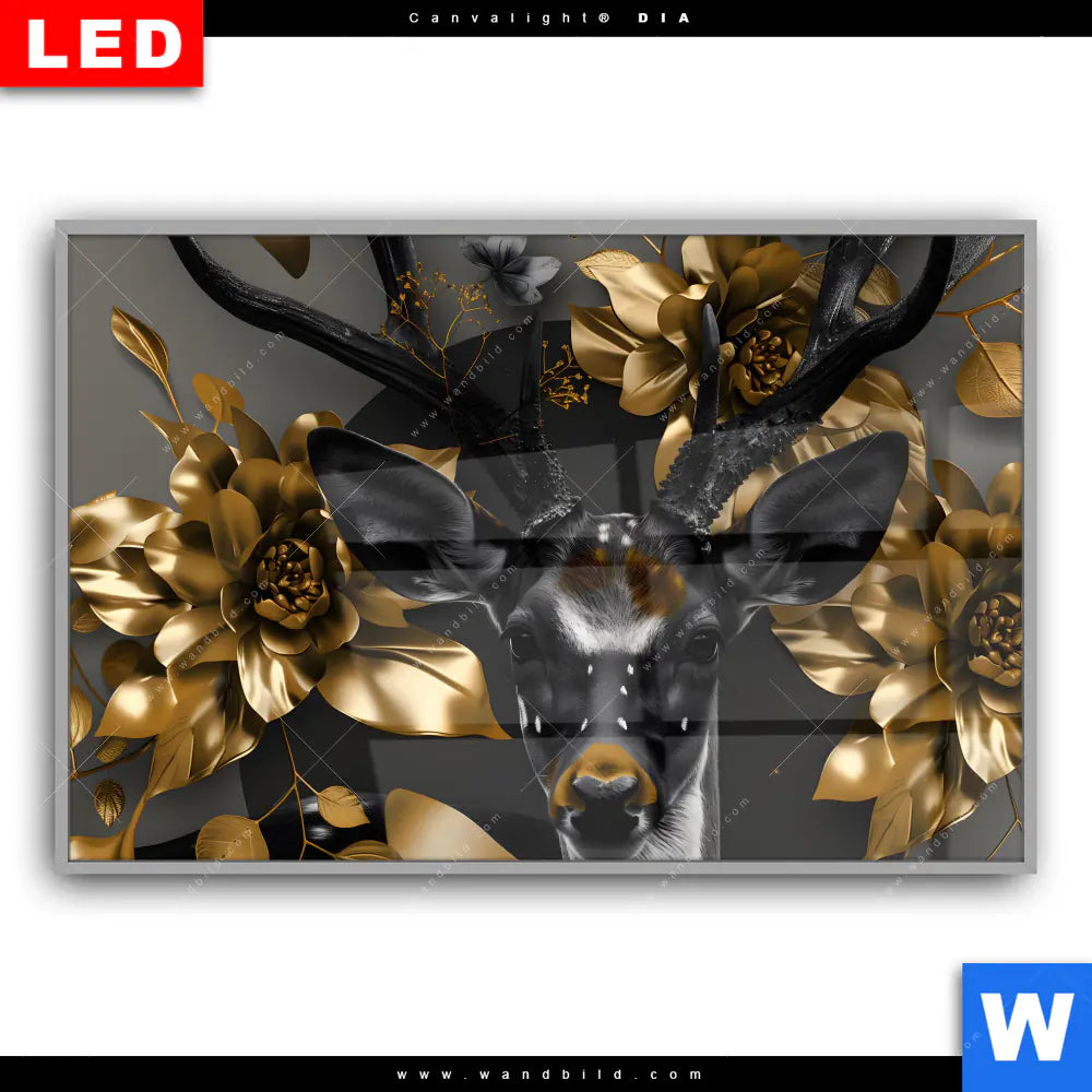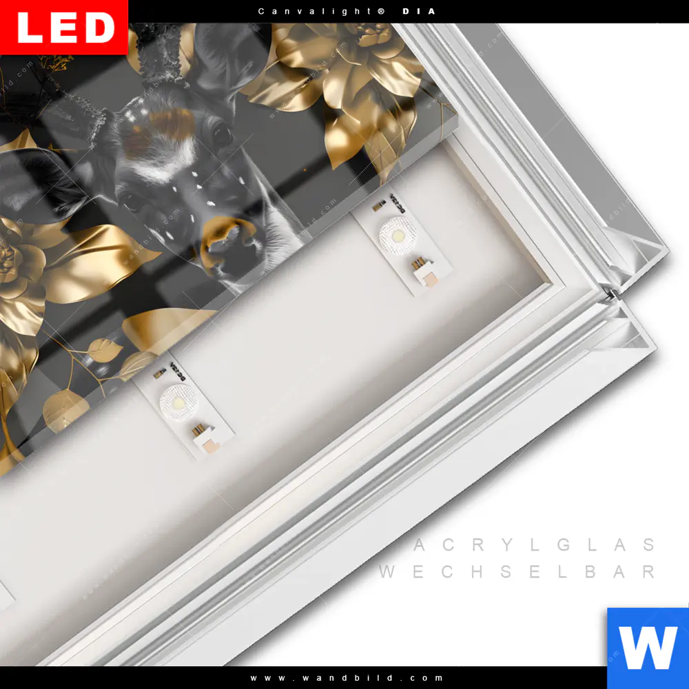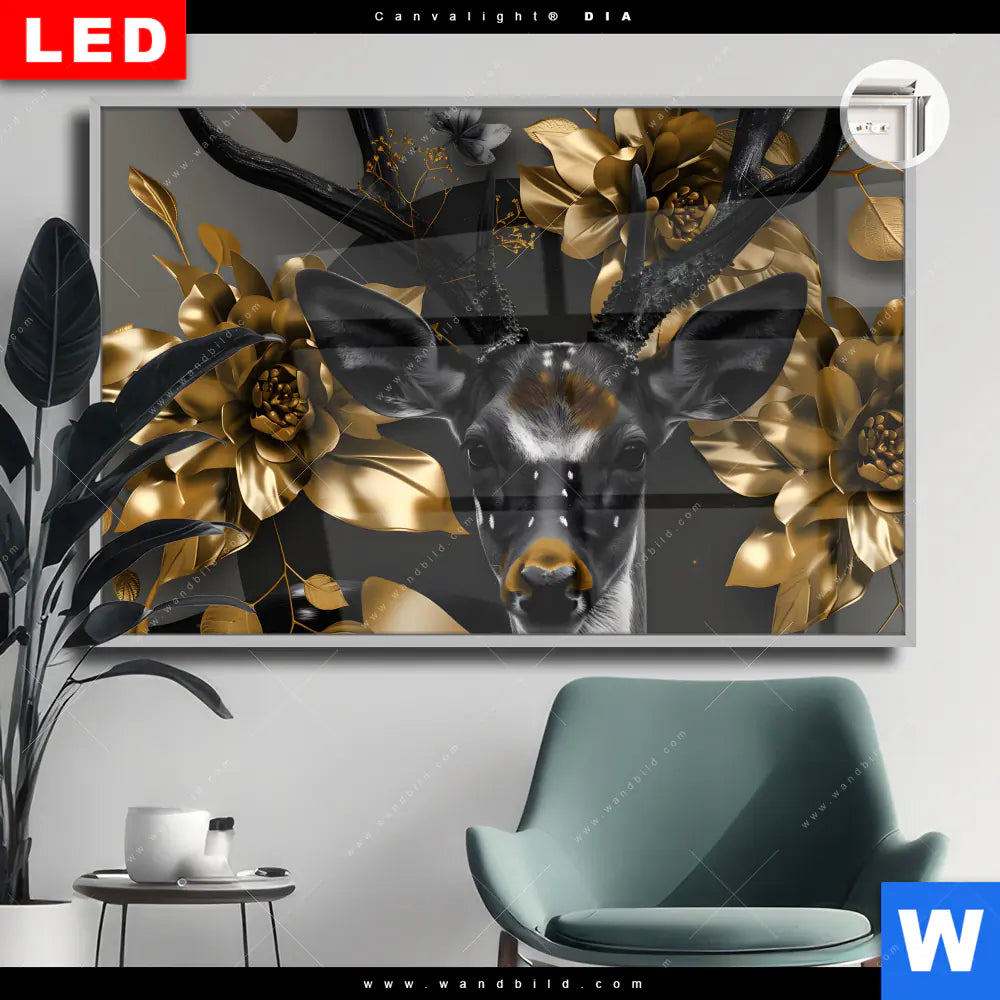Canvalight® DIA Leuchtbild | Junger Hirsch und Goldblumen | Querformat