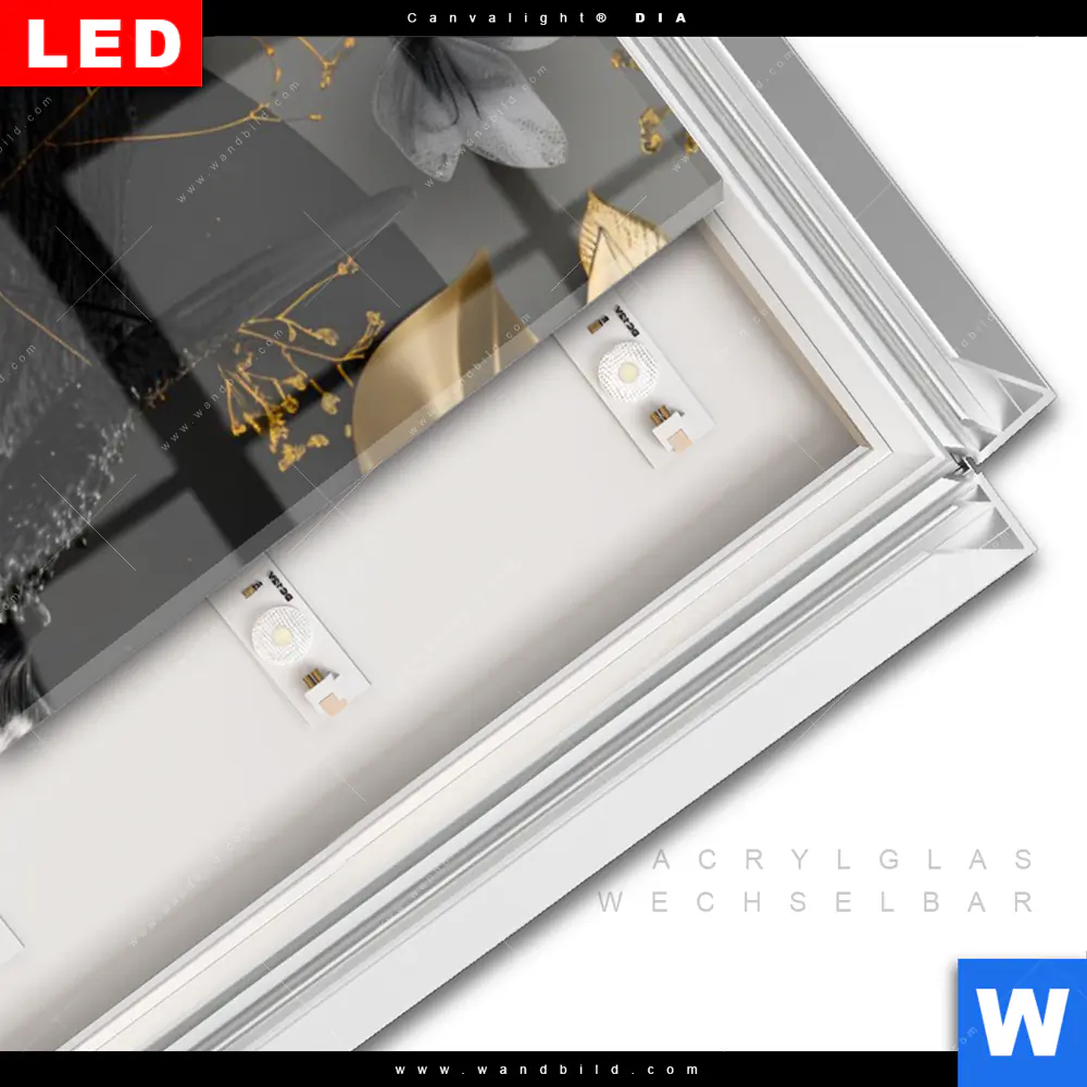 LED-Glasbild mit austauschbarem Acrylglas-Druck (Wechselbild)