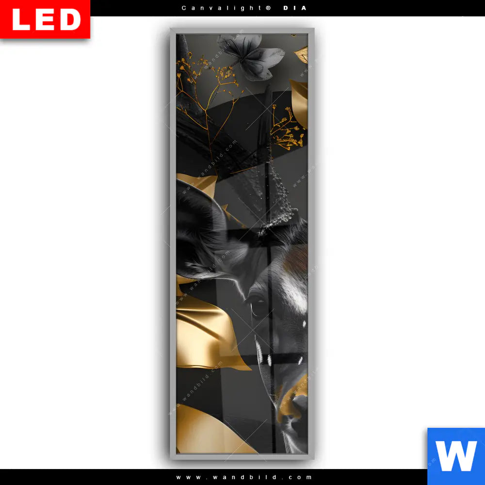 Canvalight® DIA Leuchtbild | Junger Hirsch und Goldblumen | Schmal