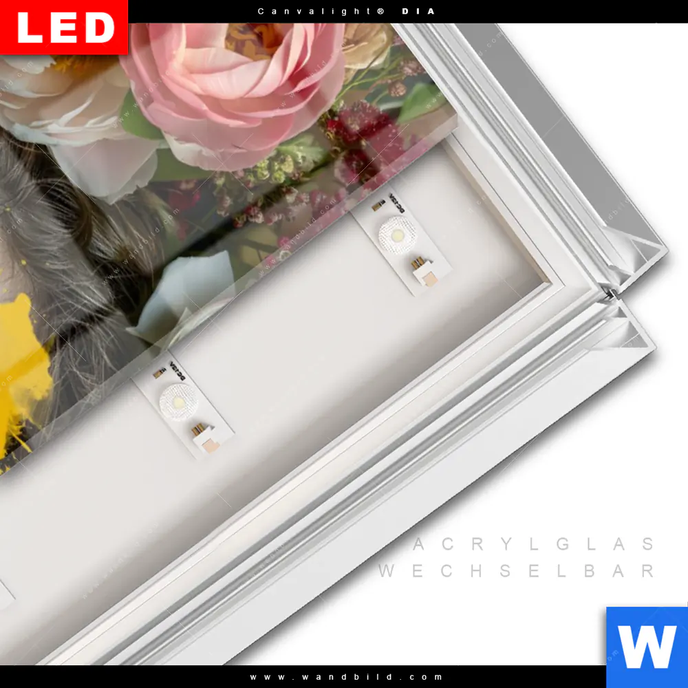 LED-Glasbild mit austauschbarem Acrylglas-Druck (Wechselbild)