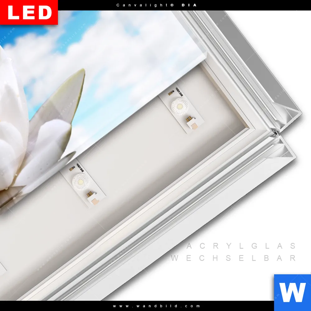 LED-Glasbild mit austauschbarem Acrylglas-Druck (Wechselbild)