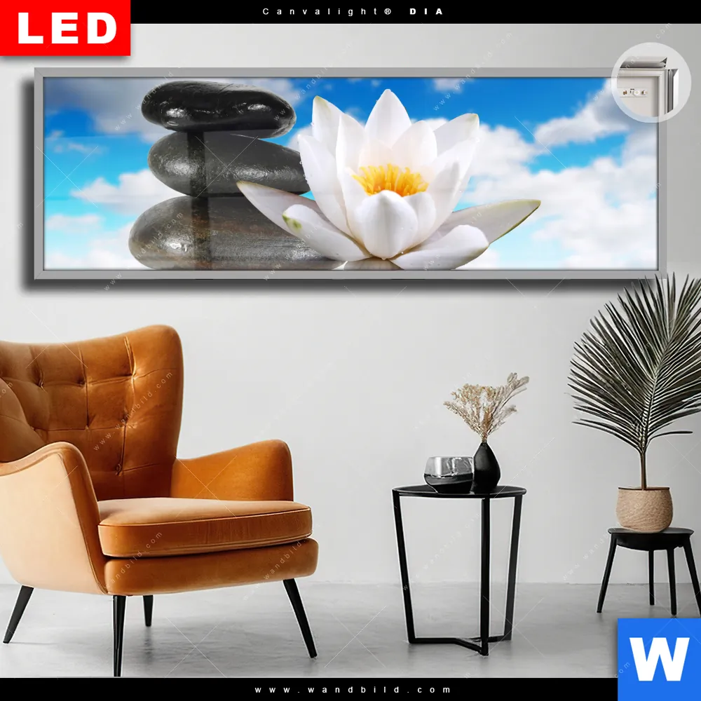 Canvalight® DIA Leuchtbild | Lilie & Zensteine | Panorama