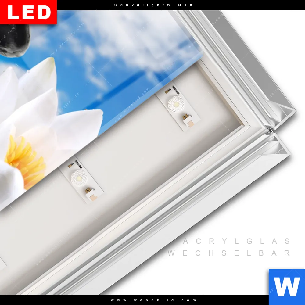 LED-Glasbild mit austauschbarem Acrylglas-Druck (Wechselbild)
