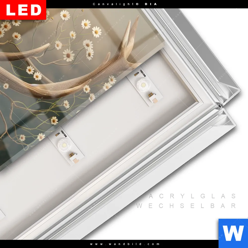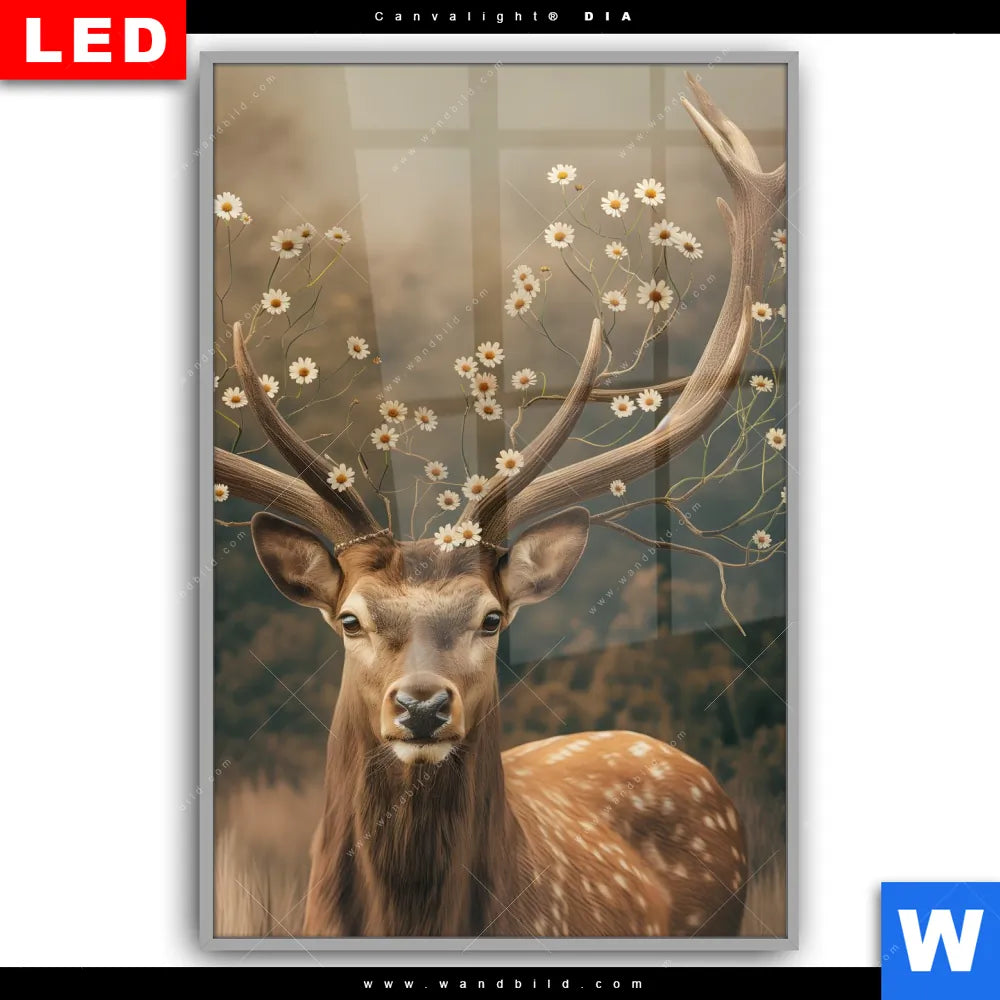 Canvalight® DIA Leuchtbild | Magischer Hirsch im Waldrand | Hochformat