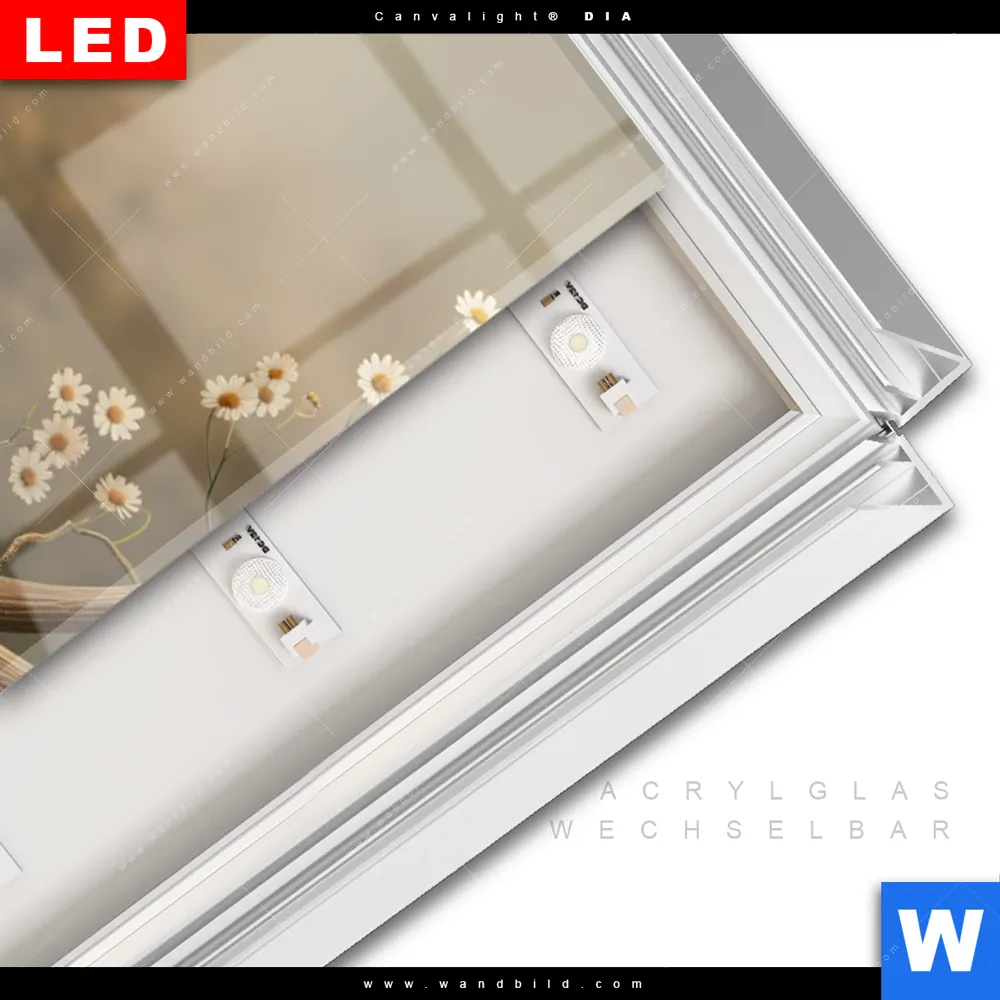 LED-Glasbild mit austauschbarem Acrylglas-Druck (Wechselbild)