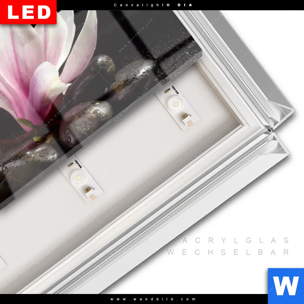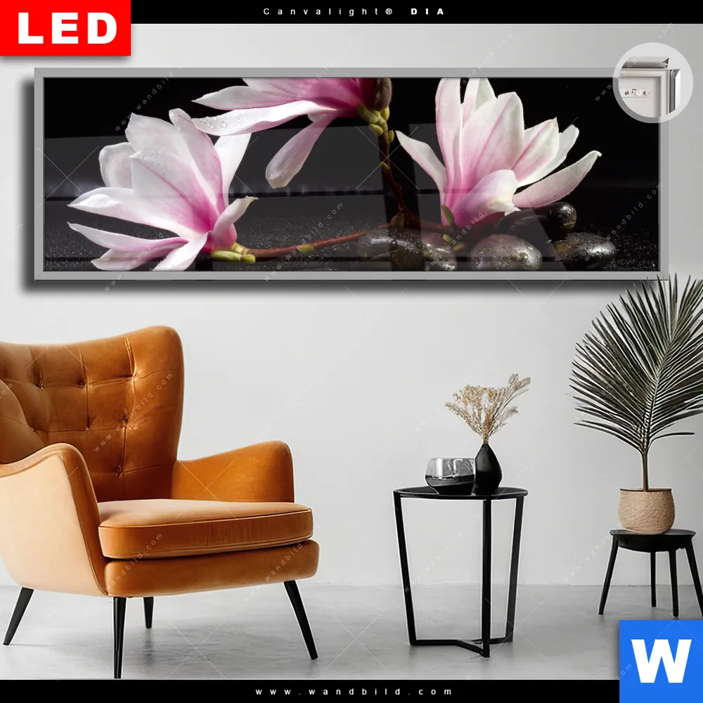 Canvalight® DIA Leuchtbild | Magnolien & Zen Steine | Panorama