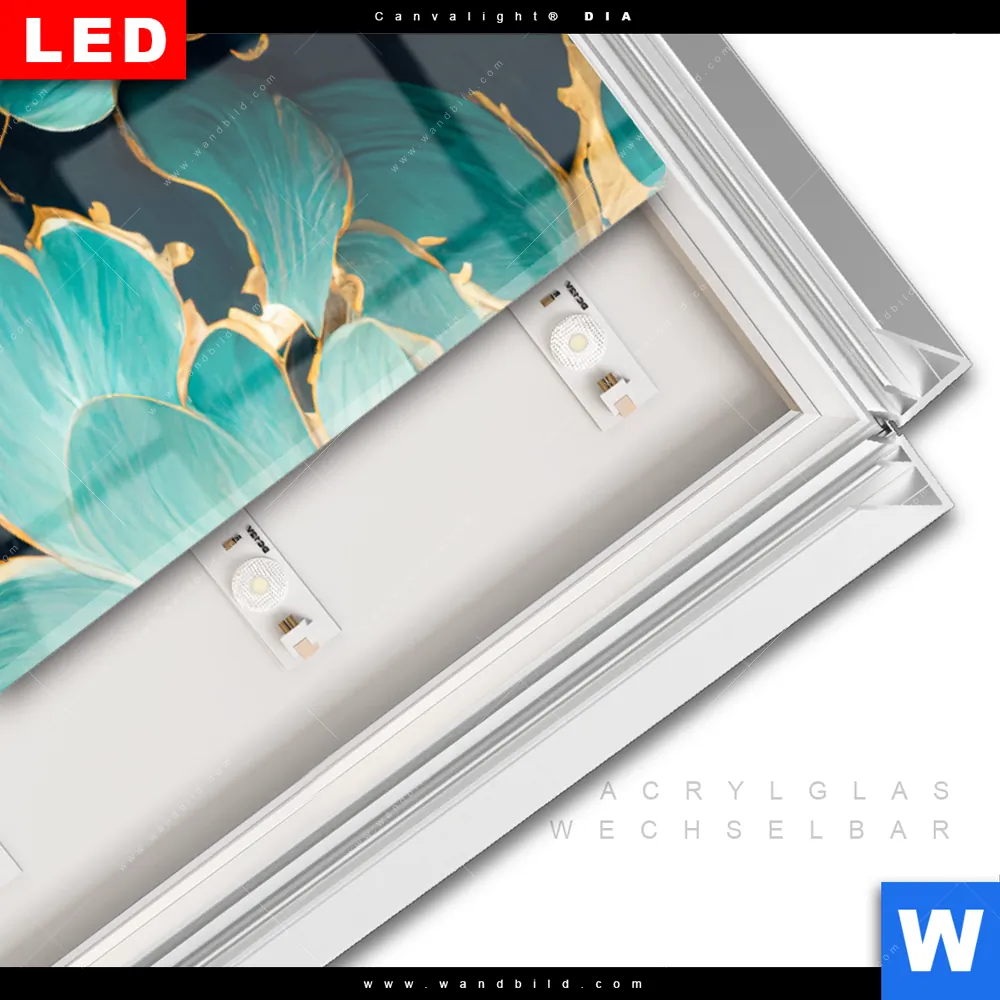 LED-Glasbild mit austauschbarem Acrylglas-Druck (Wechselbild)