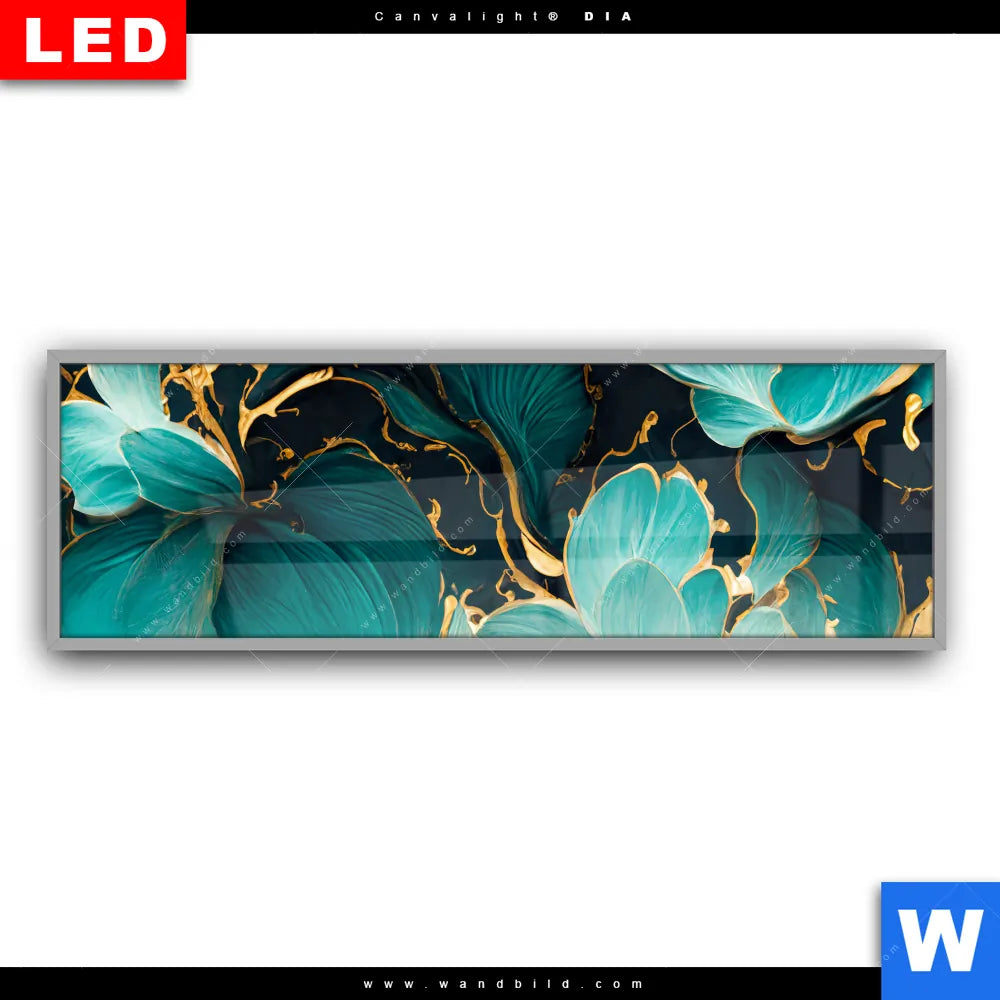 Canvalight® DIA Leuchtbild | Marmor Blüten in türkis & gold | Panorama