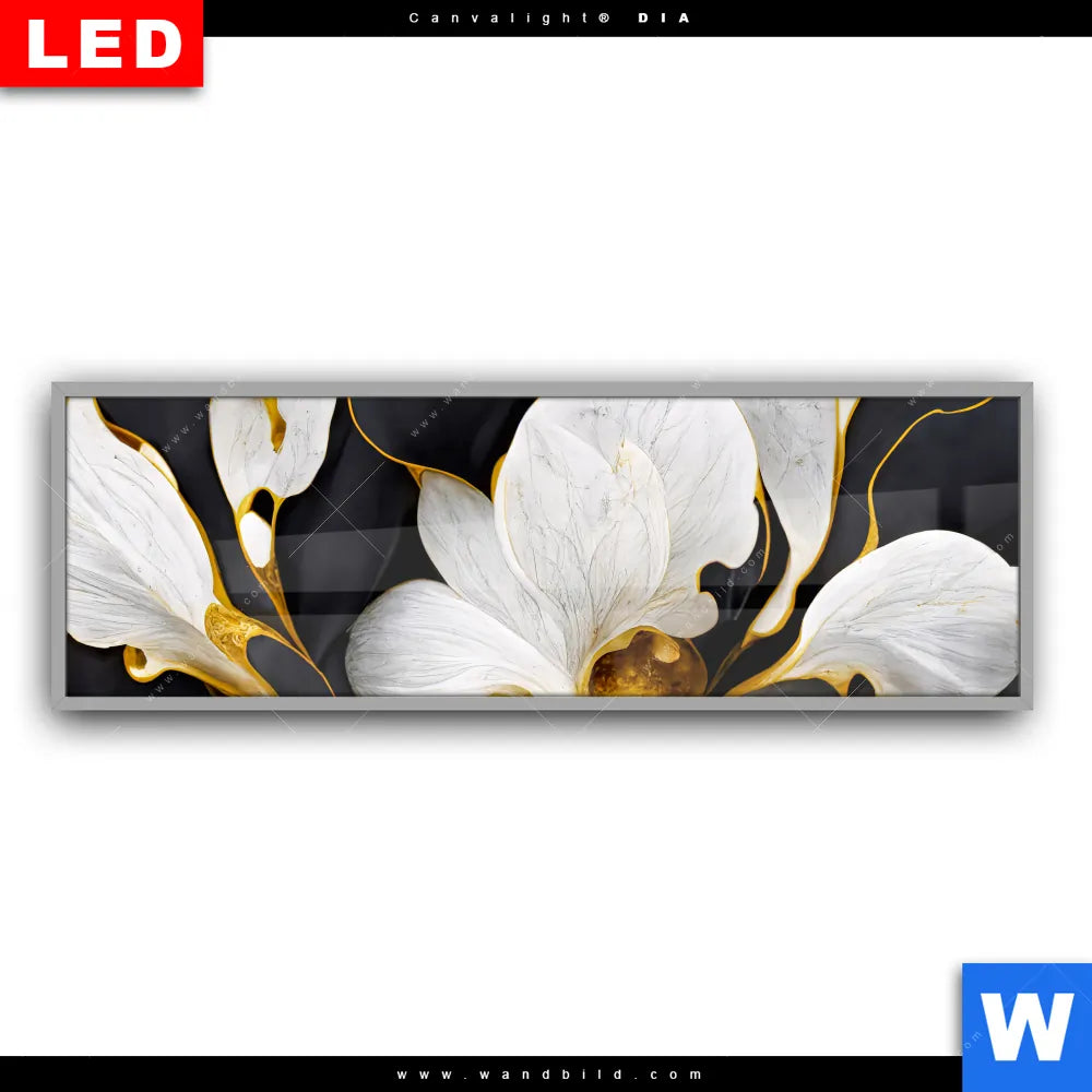 Canvalight® DIA Leuchtbild | Marmor Blüten in weiß & gold | Panorama