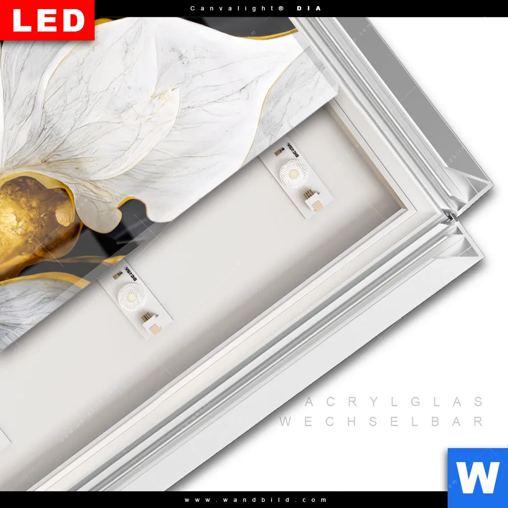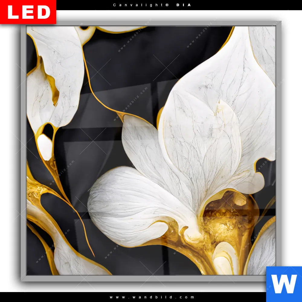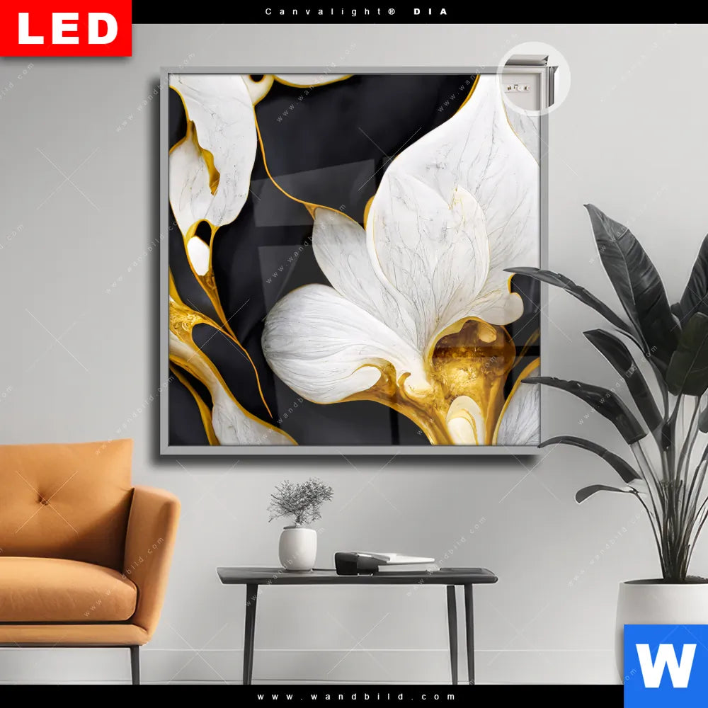 Canvalight® DIA Leuchtbild | Marmor Blüten in weiß & gold | Quadrat