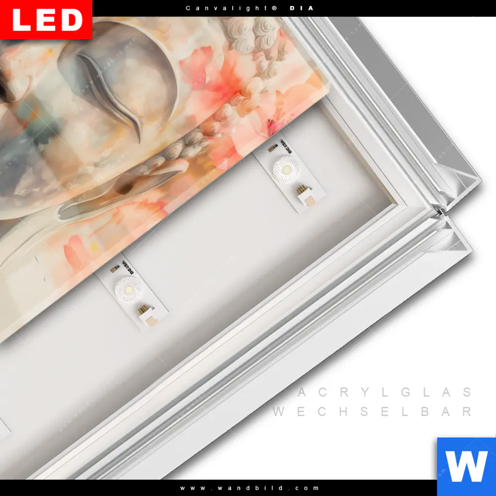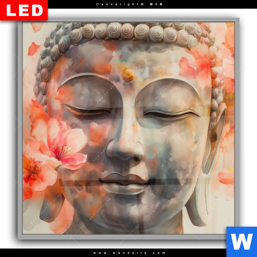 Canvalight® DIA Leuchtbild | Meditativer Buddha in Blumen | Quadrat