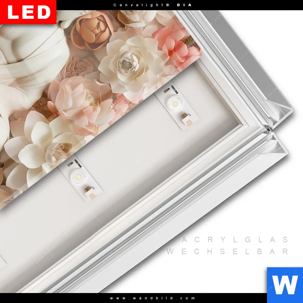 LED-Glasbild mit austauschbarem Acrylglas-Druck (Wechselbild)