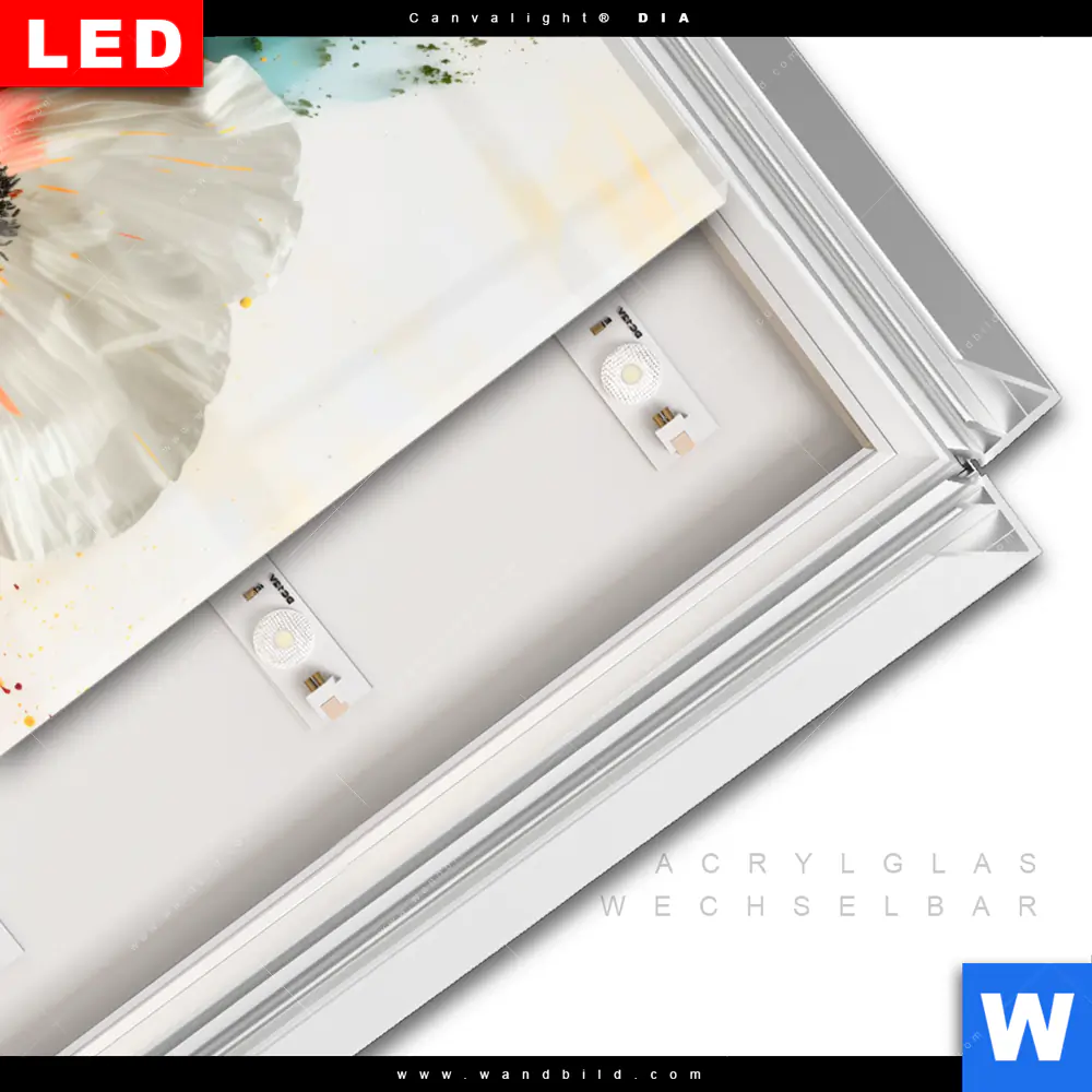 LED-Glasbild mit austauschbarem Acrylglas-Druck (Wechselbild)