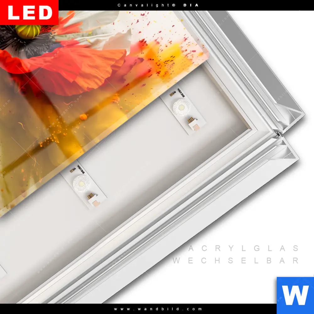 LED-Glasbild mit austauschbarem Acrylglas-Druck (Wechselbild)