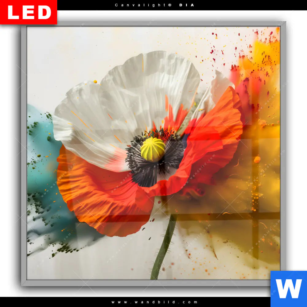 Canvalight® DIA Leuchtbild | Mohnblume im Farbnebel | Quadrat