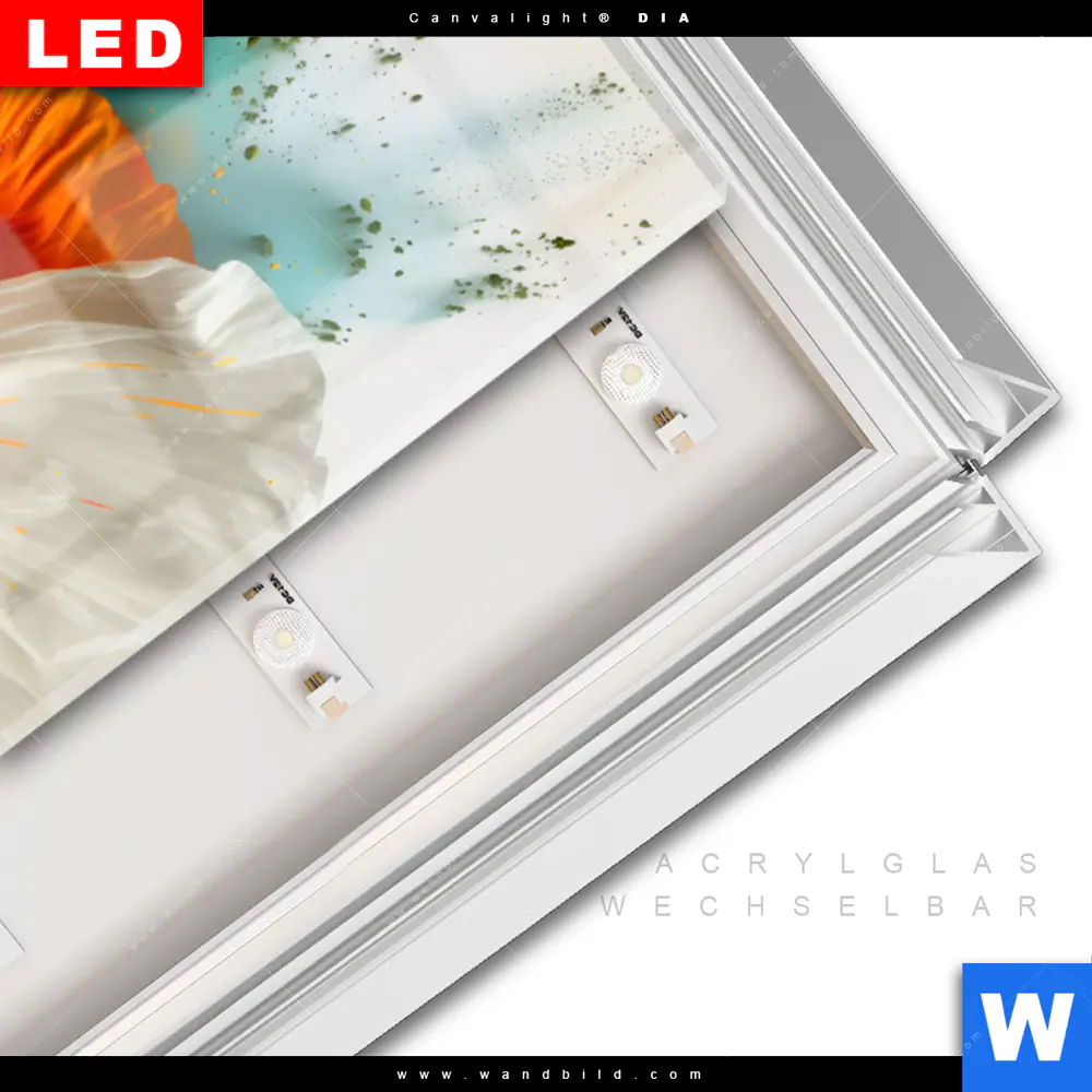 LED-Glasbild mit austauschbarem Acrylglas-Druck (Wechselbild)