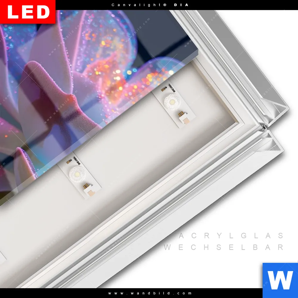 LED-Glasbild mit austauschbarem Acrylglas-Druck (Wechselbild)