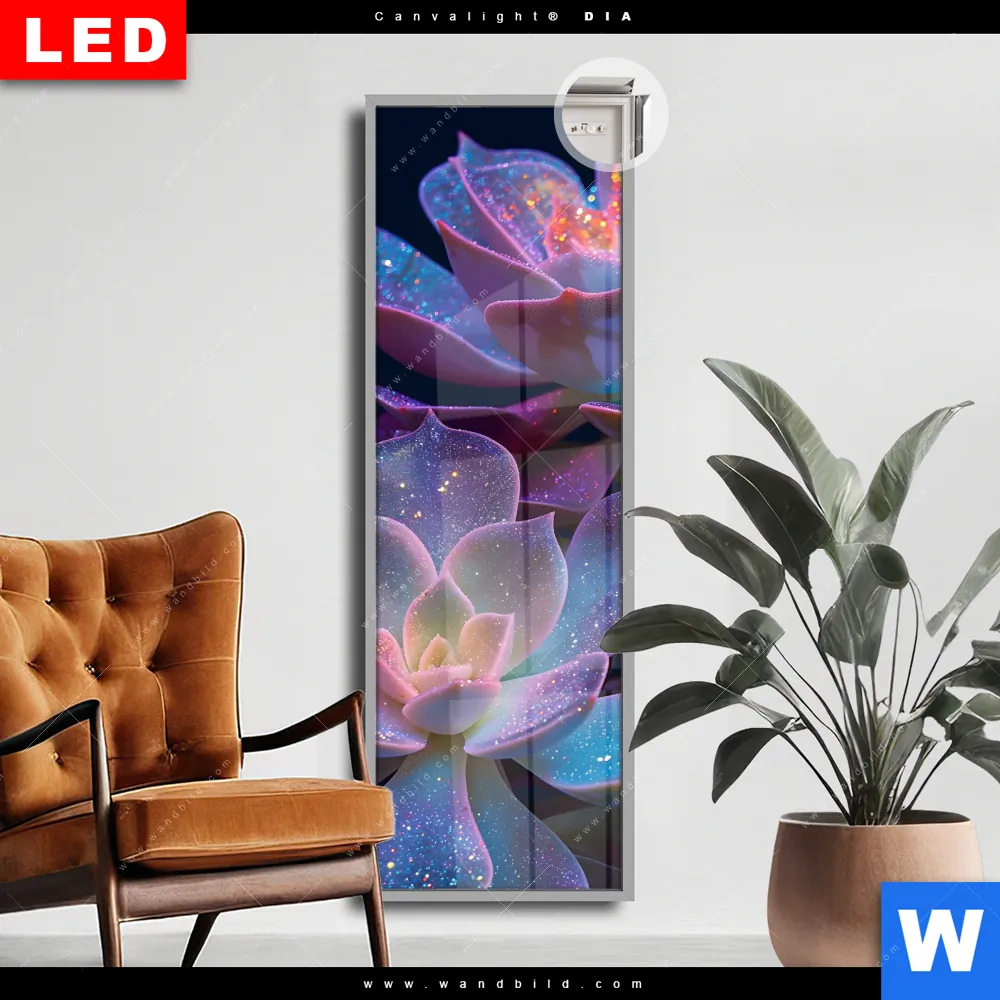 Canvalight® DIA Leuchtbild | Neon Sukkulenten | Schmal