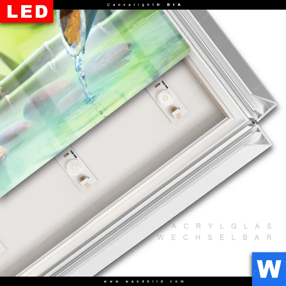 LED-Glasbild mit austauschbarem Acrylglas-Druck (Wechselbild)
