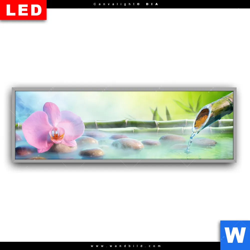 Canvalight® DIA Leuchtbild | Orchidee im japanischer Brunnen | Panorama