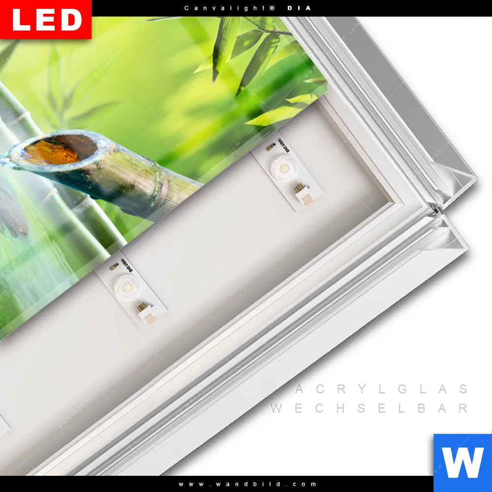 LED-Glasbild mit austauschbarem Acrylglas-Druck (Wechselbild)