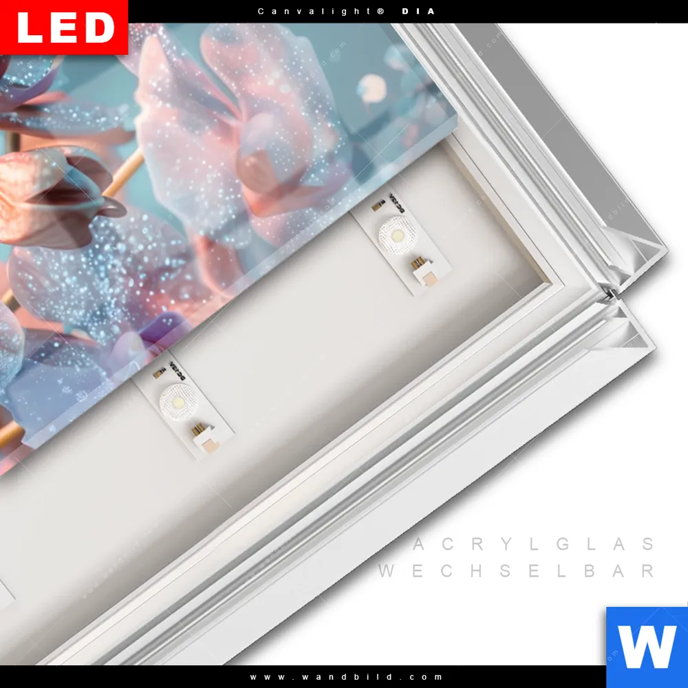 LED-Glasbild mit austauschbarem Acrylglas-Druck (Wechselbild)