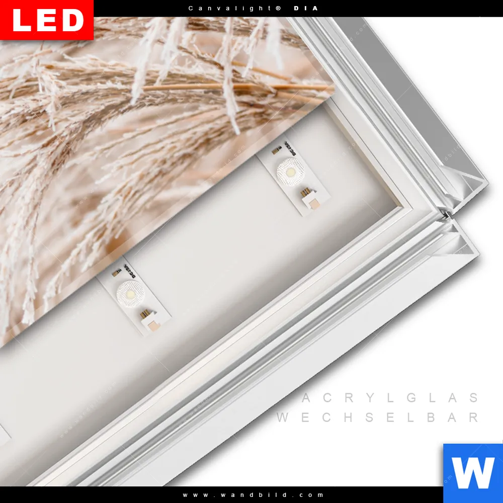 LED-Glasbild mit austauschbarem Acrylglas-Druck (Wechselbild)