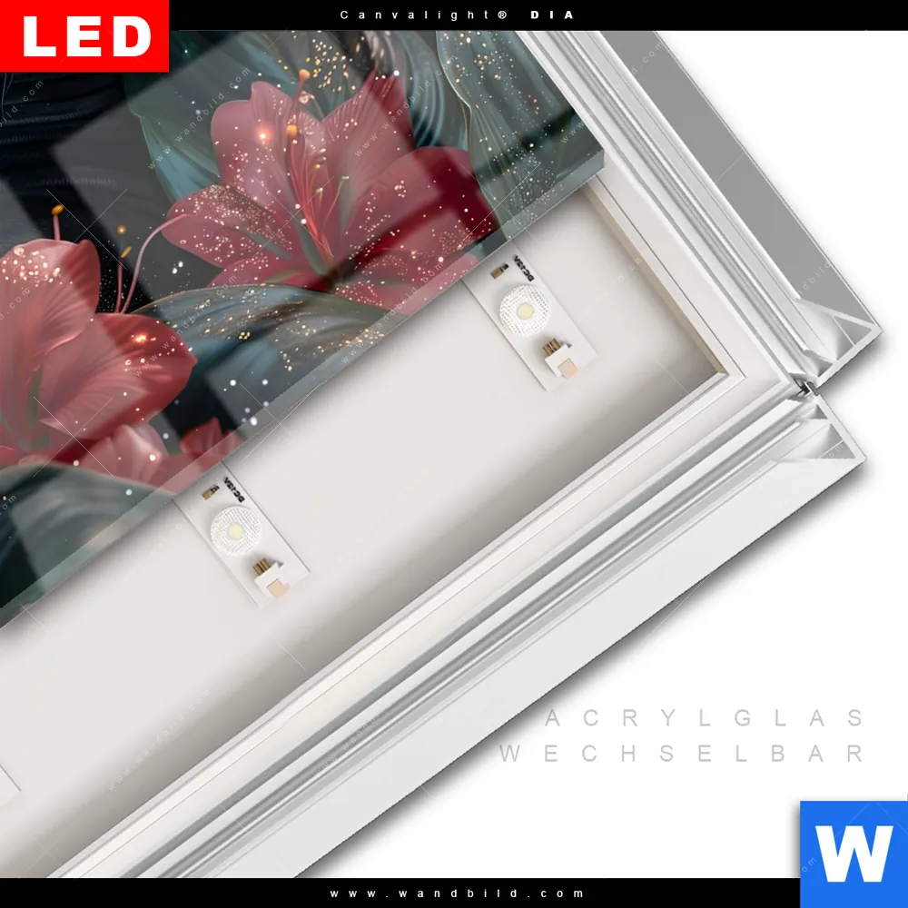 LED-Glasbild mit austauschbarem Acrylglas-Druck (Wechselbild)