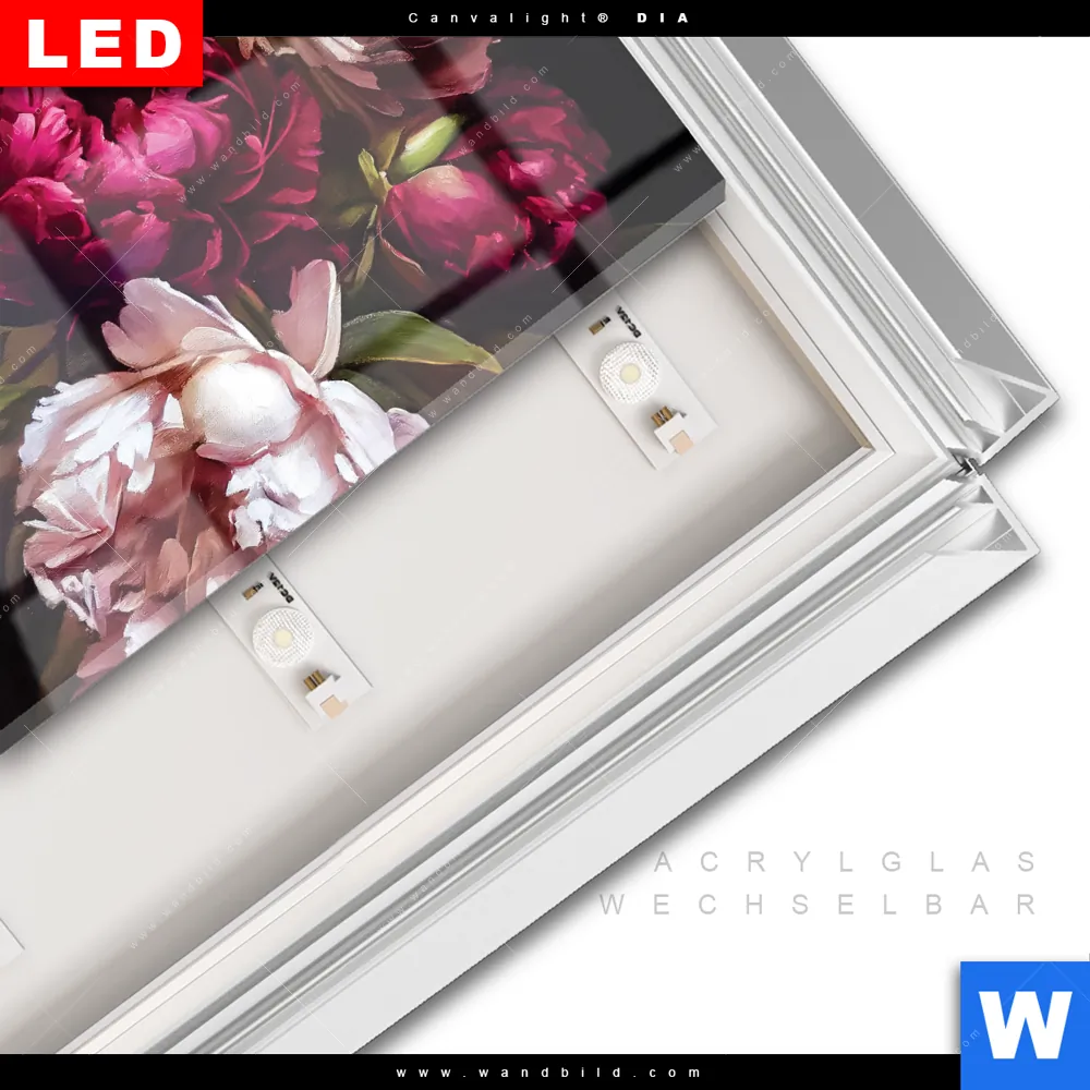 LED-Glasbild mit austauschbarem Acrylglas-Druck (Wechselbild)