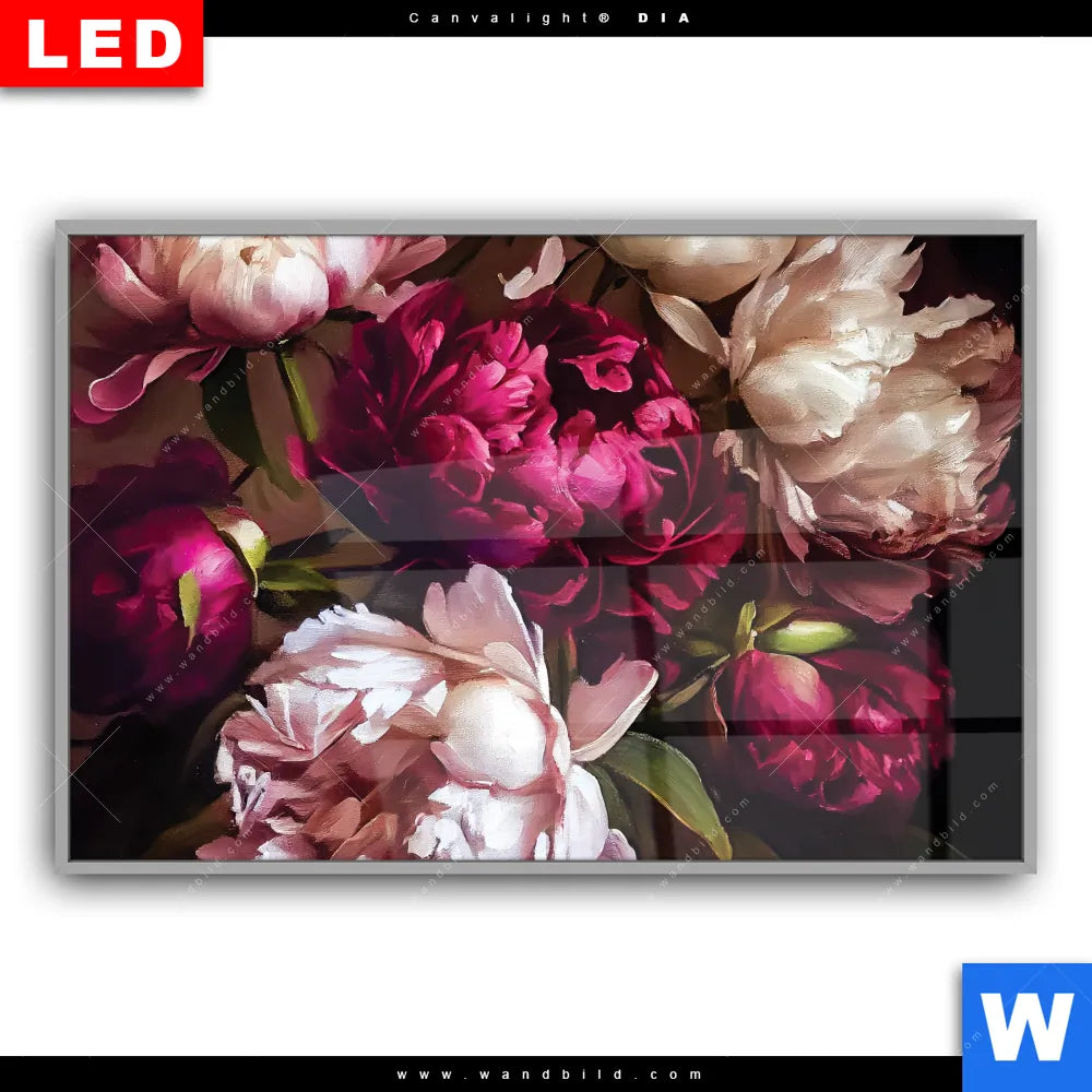 Leuchtbild Acrylglas Canvalight® DIA | Pfingstrosen im Barockstil | Querformat