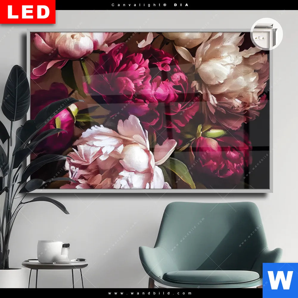 Canvalight® DIA Leuchtbild | Pfingstrosen im Barockstil | Querformat