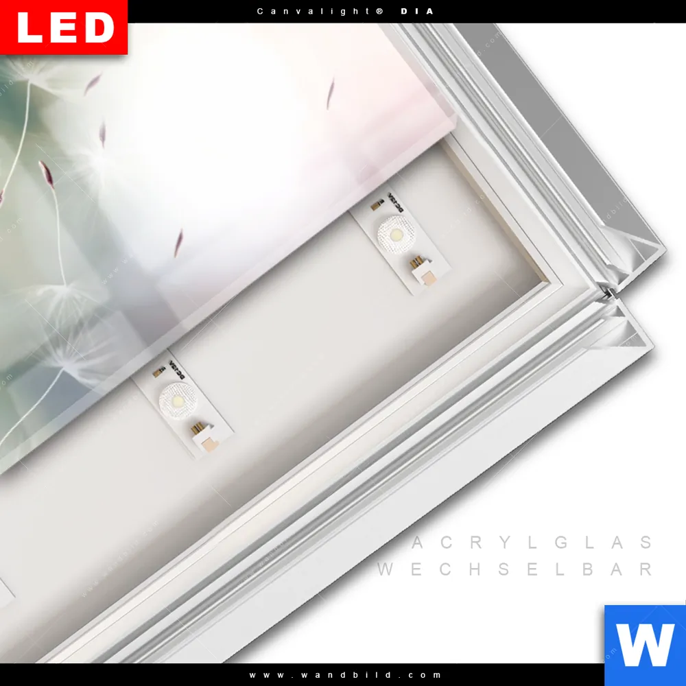LED-Glasbild mit austauschbarem Acrylglas-Druck (Wechselbild)