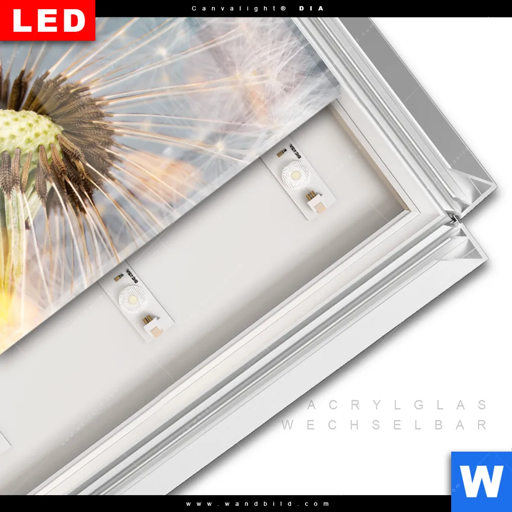 LED-Glasbild mit austauschbarem Acrylglas-Druck (Wechselbild)