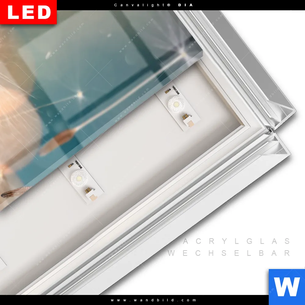 LED-Glasbild mit austauschbarem Acrylglas-Druck (Wechselbild)
