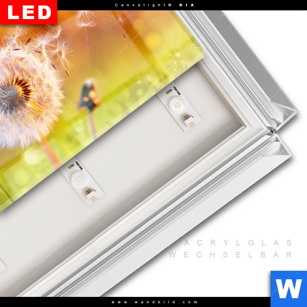 LED-Glasbild mit austauschbarem Acrylglas-Druck (Wechselbild)