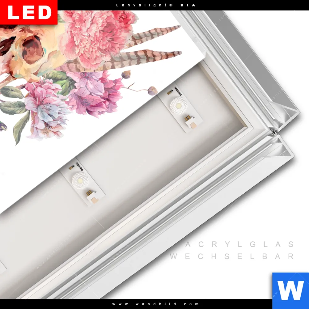 LED-Glasbild mit austauschbarem Acrylglas-Druck (Wechselbild)